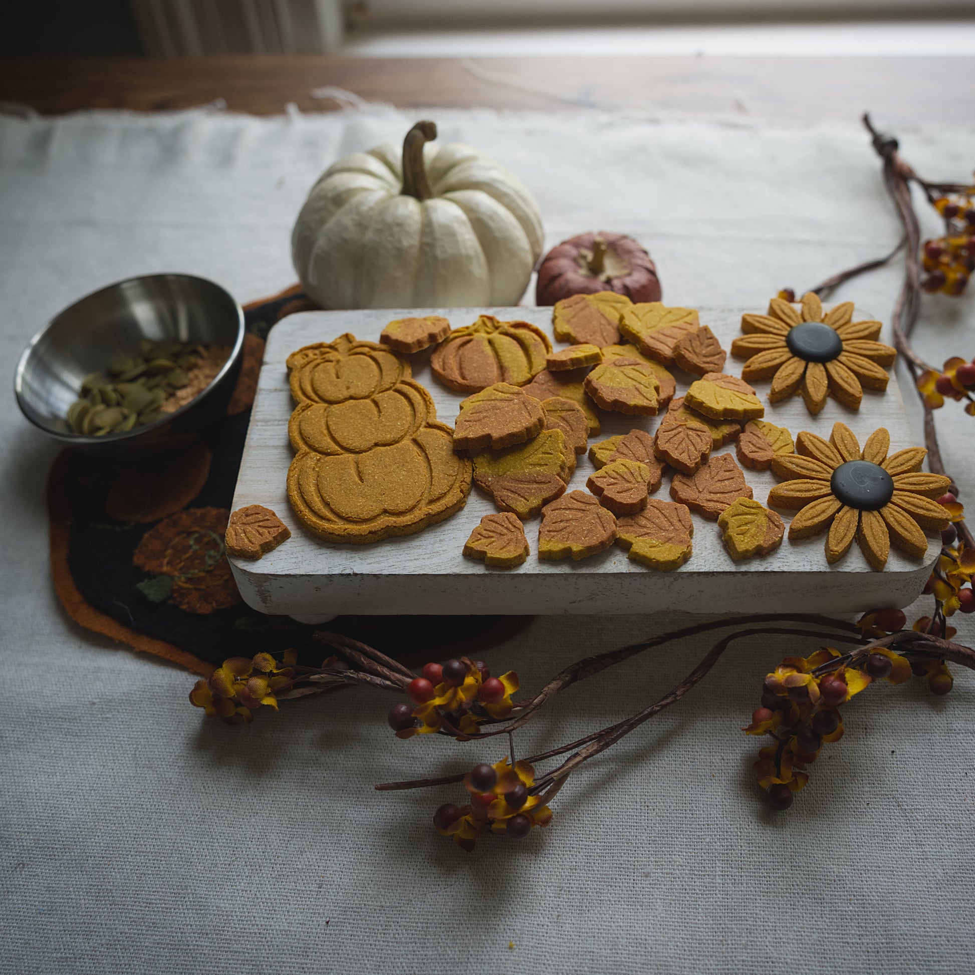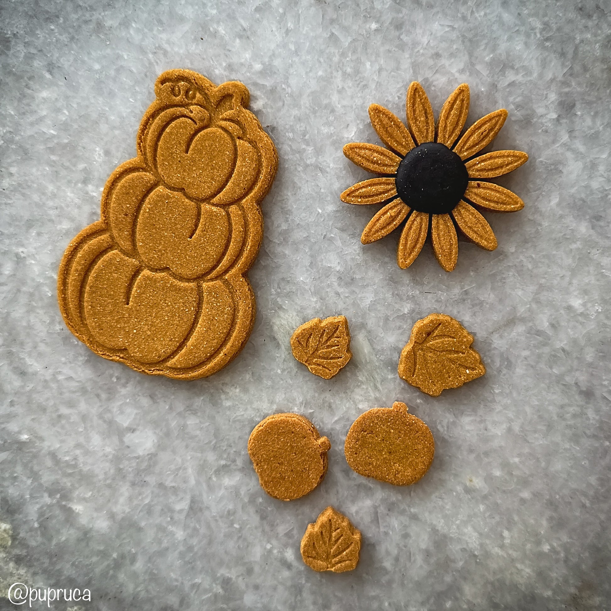 1 oz of marbled maple leaf & pumpkin shaped mini treats.
