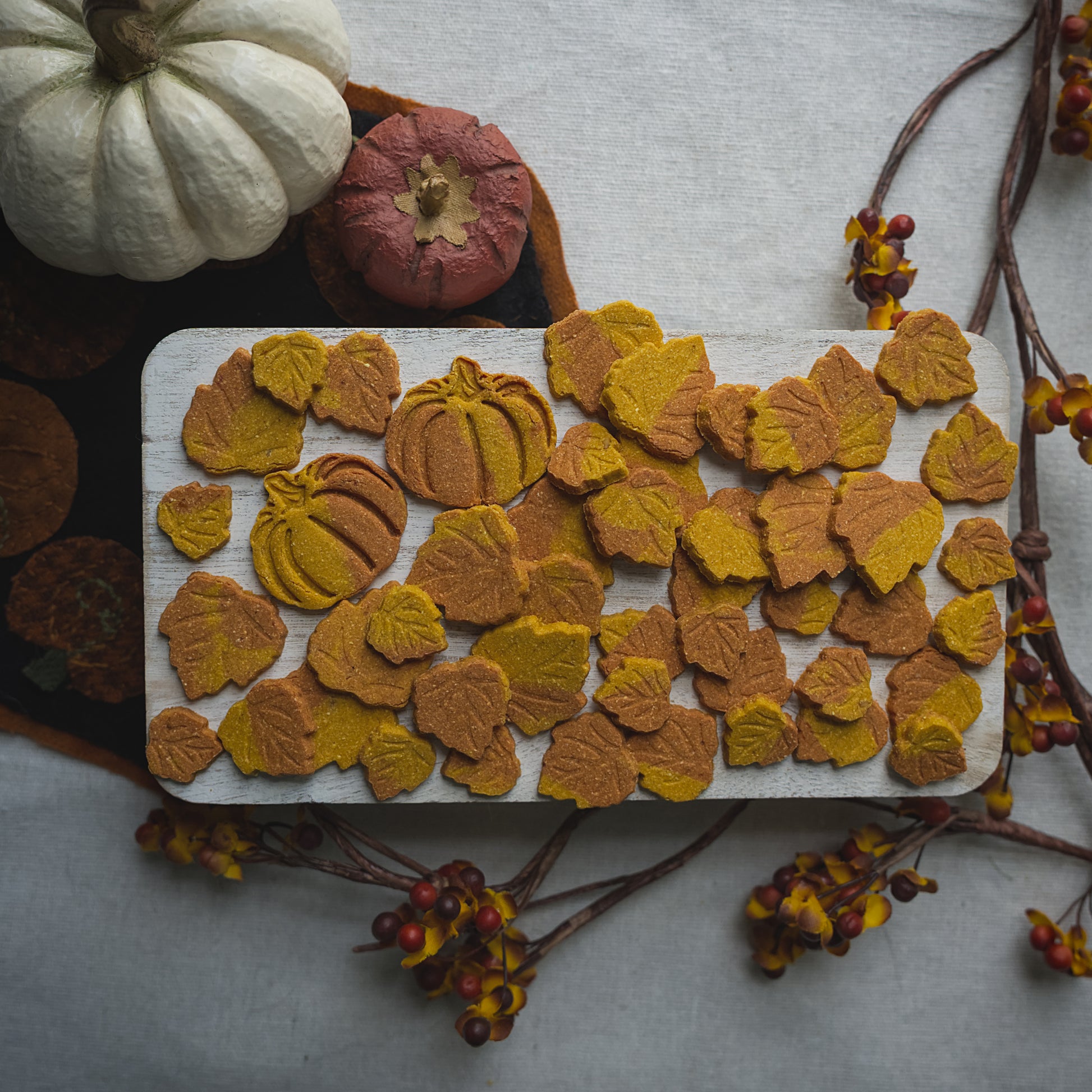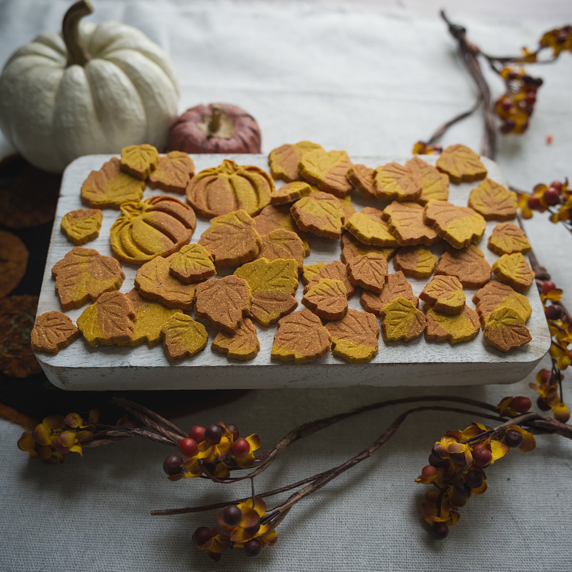 Autumn Leaves- 2 oz of marbled maple leaf & pumpkin shaped mini treats.