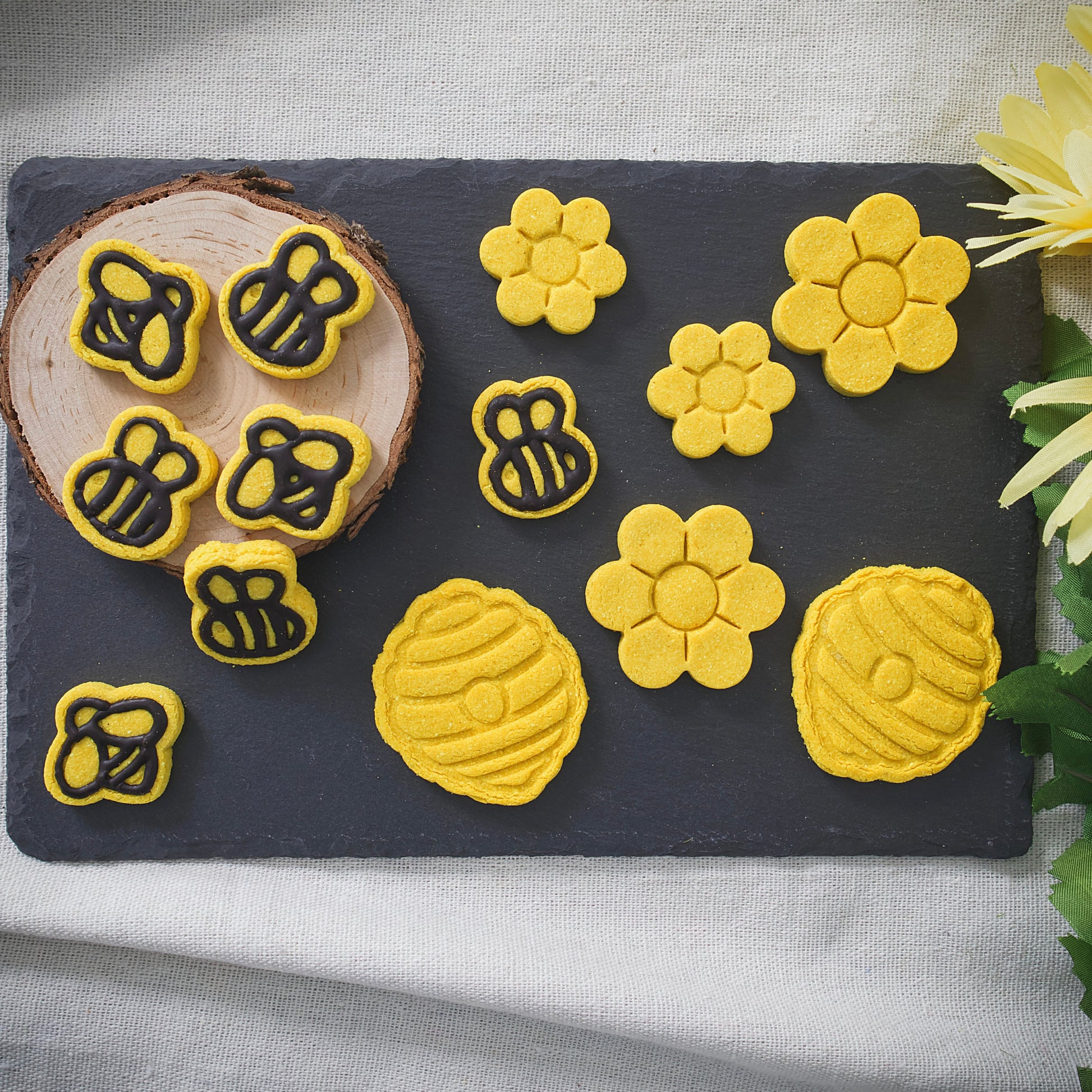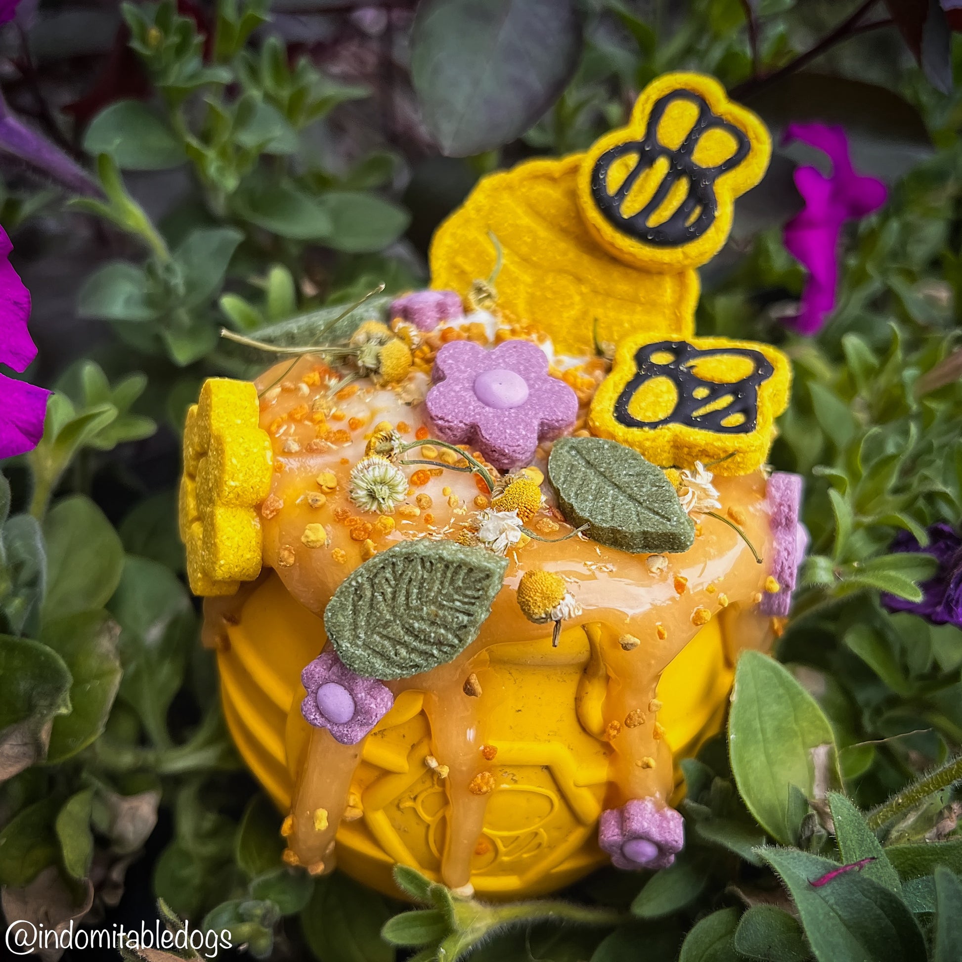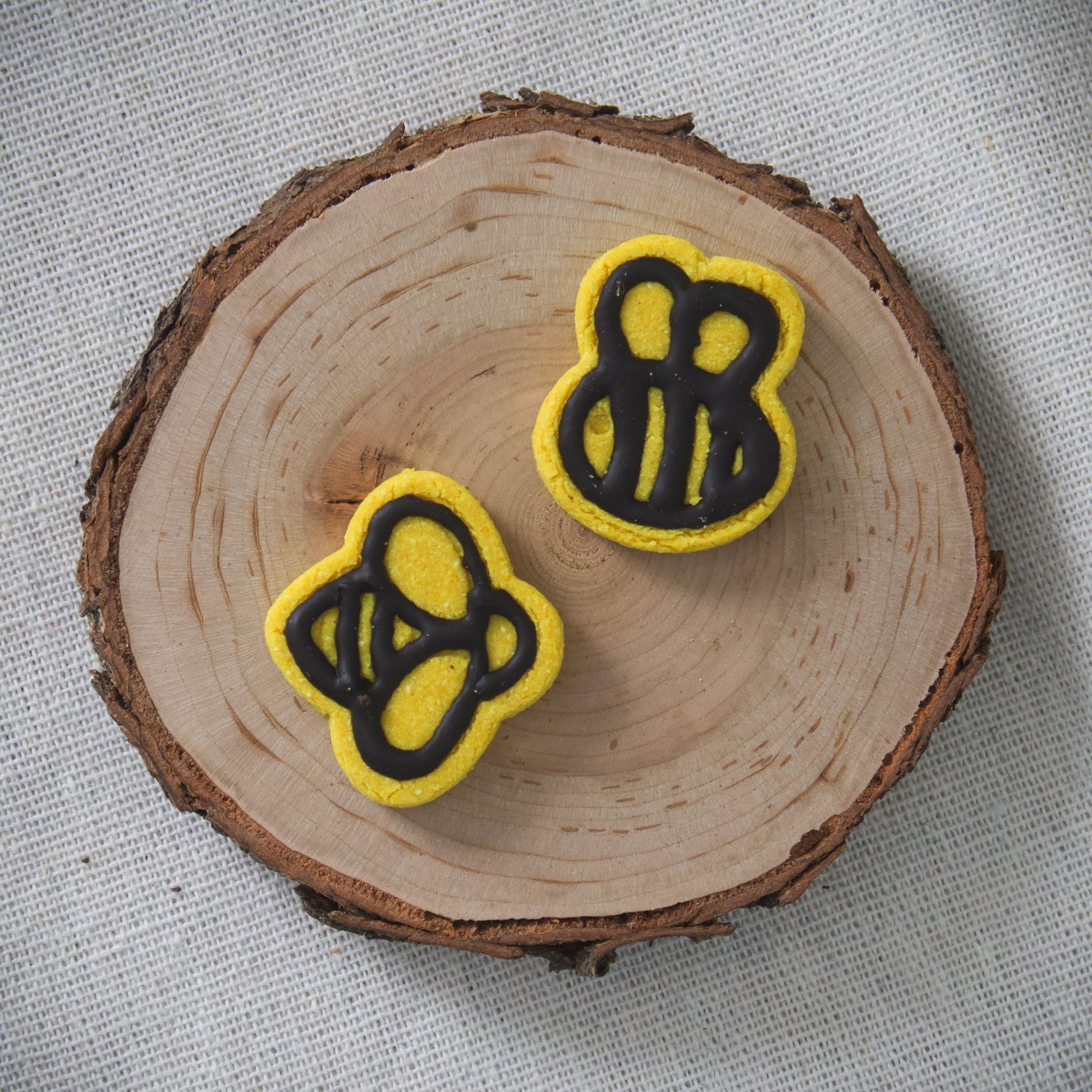 Made with Organic Turmeric and a carob outline on the bees.