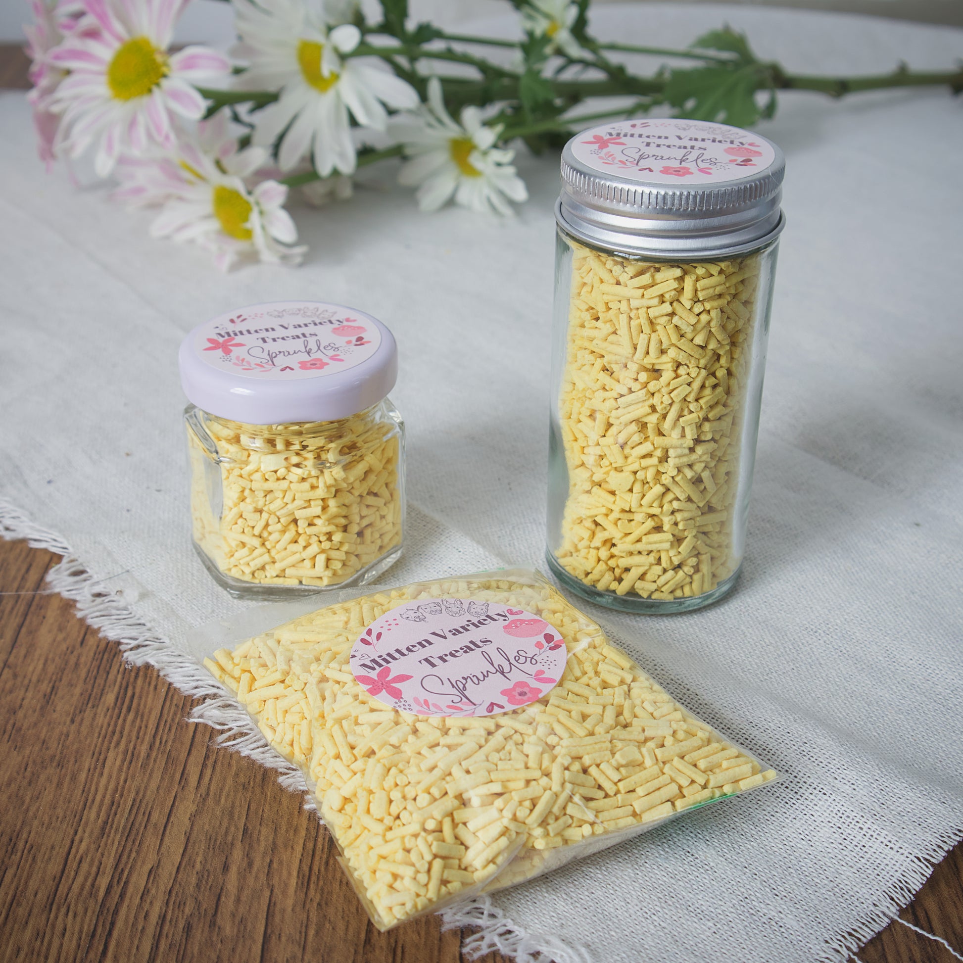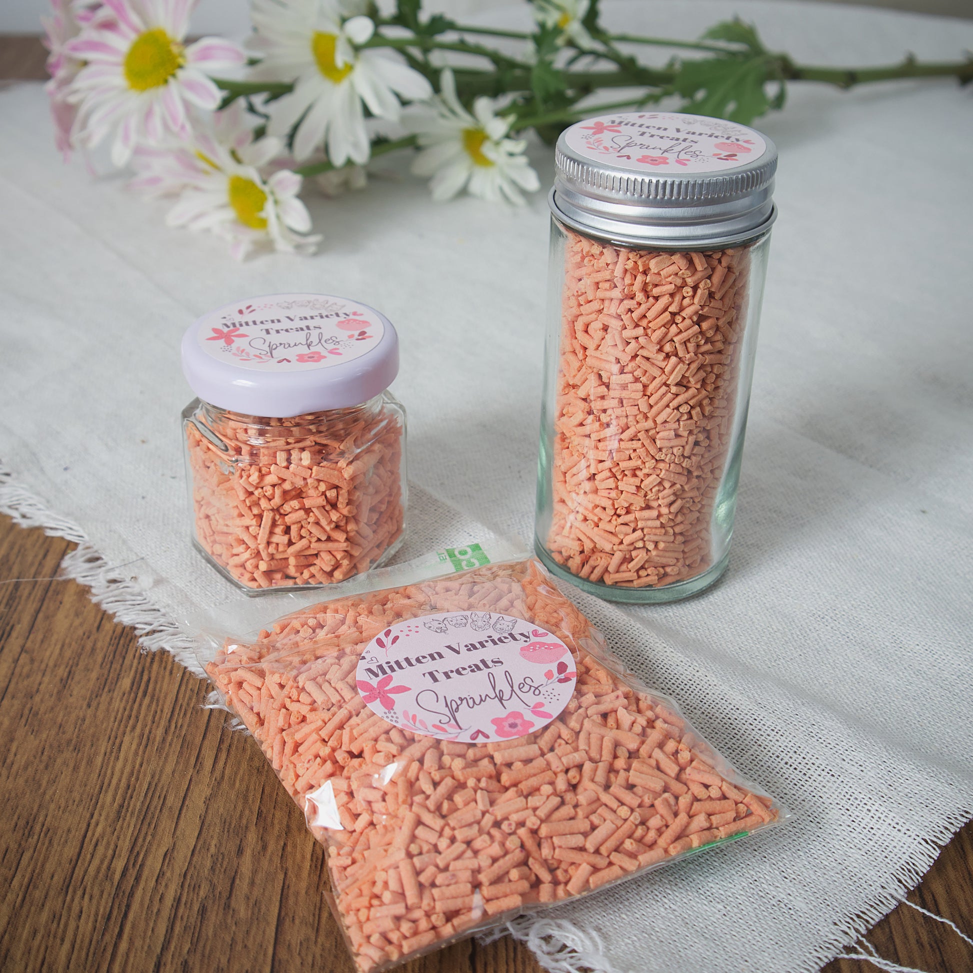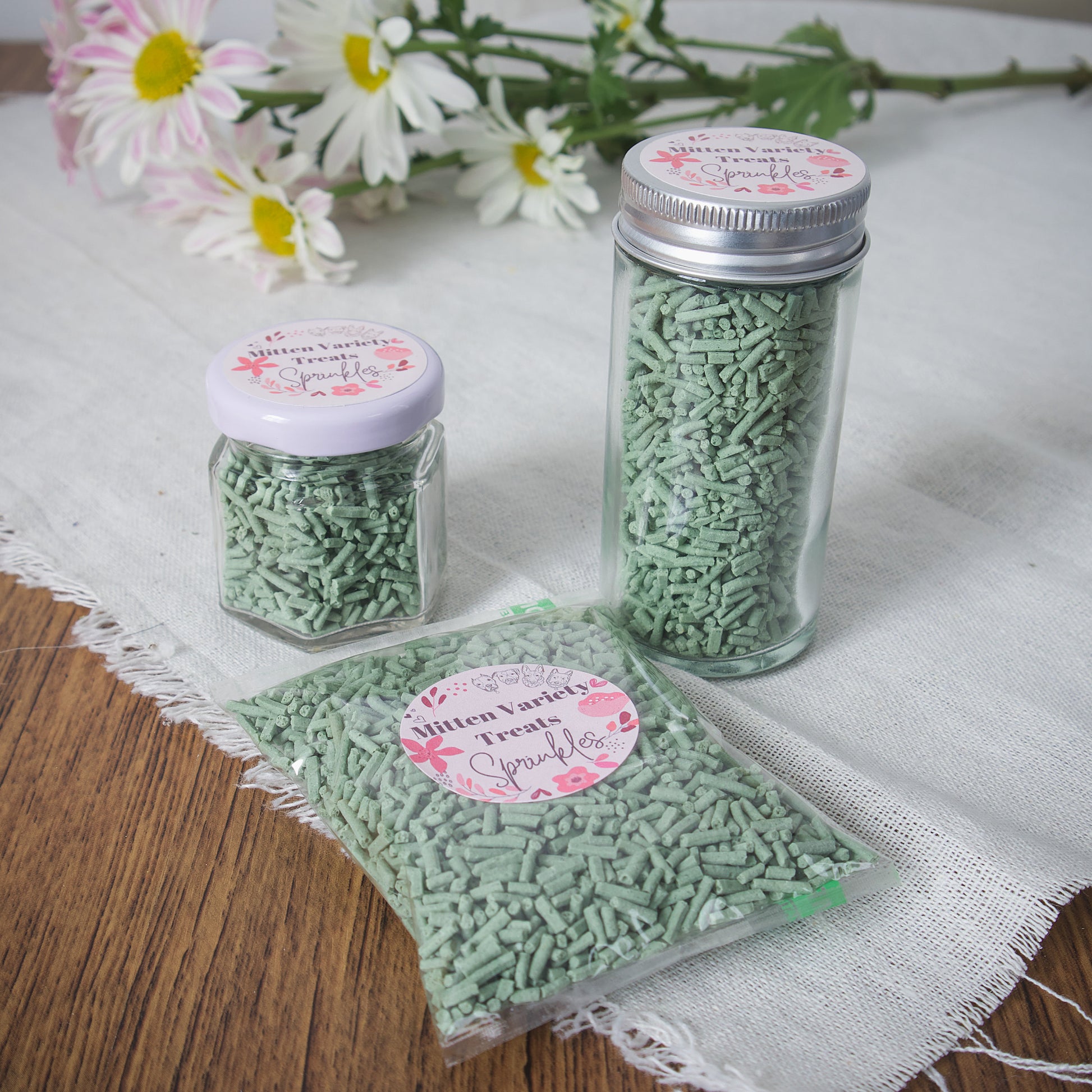 These handmade dog friendly sprinkles are wheat, soy, and corn free, no added sugar, no hydrogenated fats, titanium dioxide free, and colored with all natural superfood powders! They are perfect for decorating treats, cakes, and make a cute food topper.