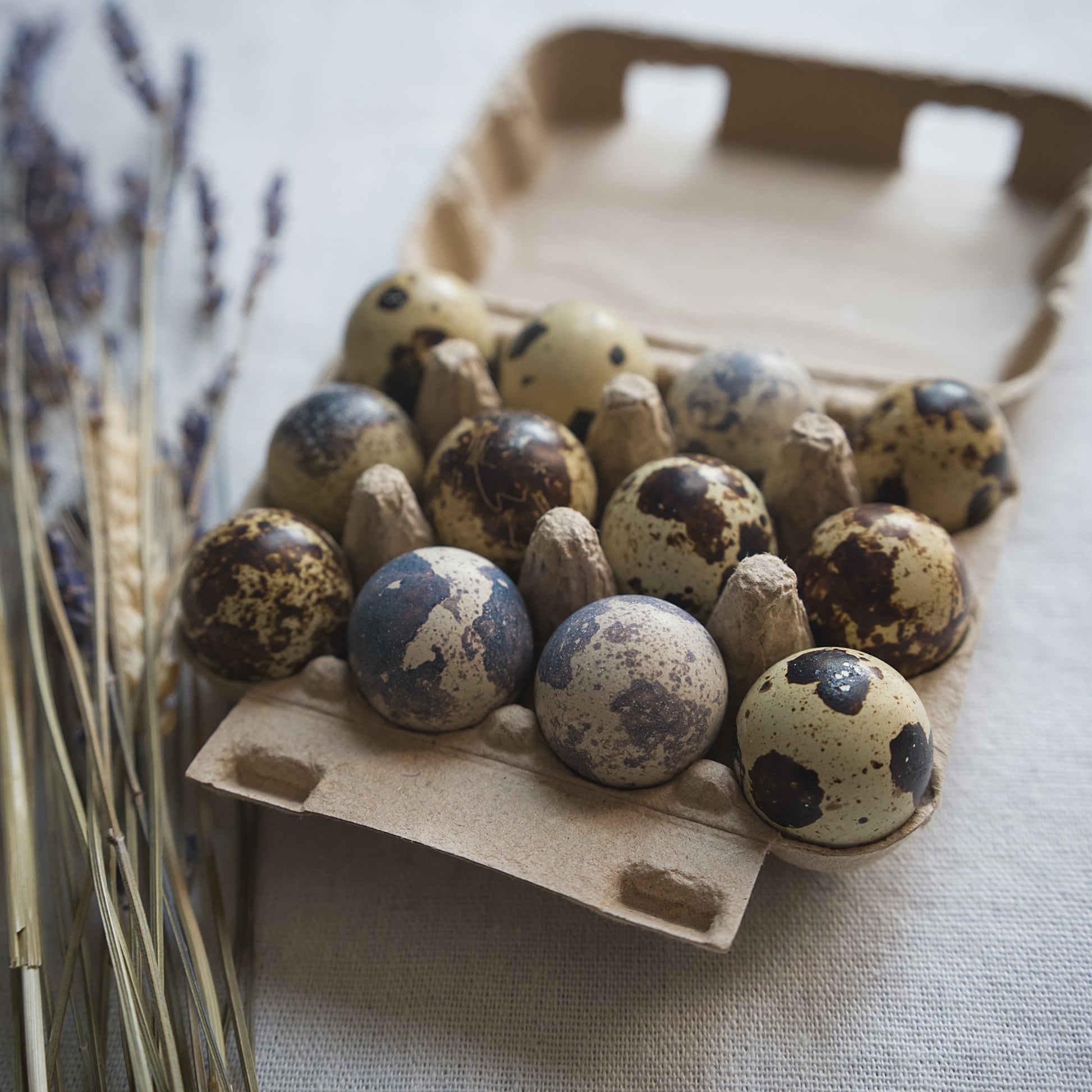 Our quail are organically raised on high quality feed and natural enrichment. They enjoy a healthy, stress free life with lots of love. Our jumbo quail eggs currently average 14-15g, roughly 1/4 of a US large chicken egg. Our hens are young and eggs will get larger over time!